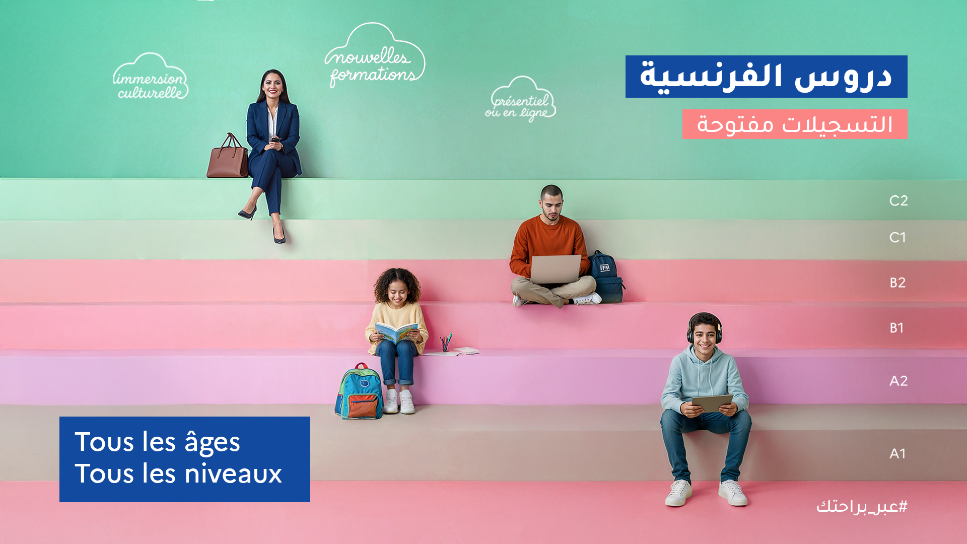 Inscriptions du mardi au samedi de 9h à 12h15 et de 13h30 à 17h15 à l’Institut français d’Agadir