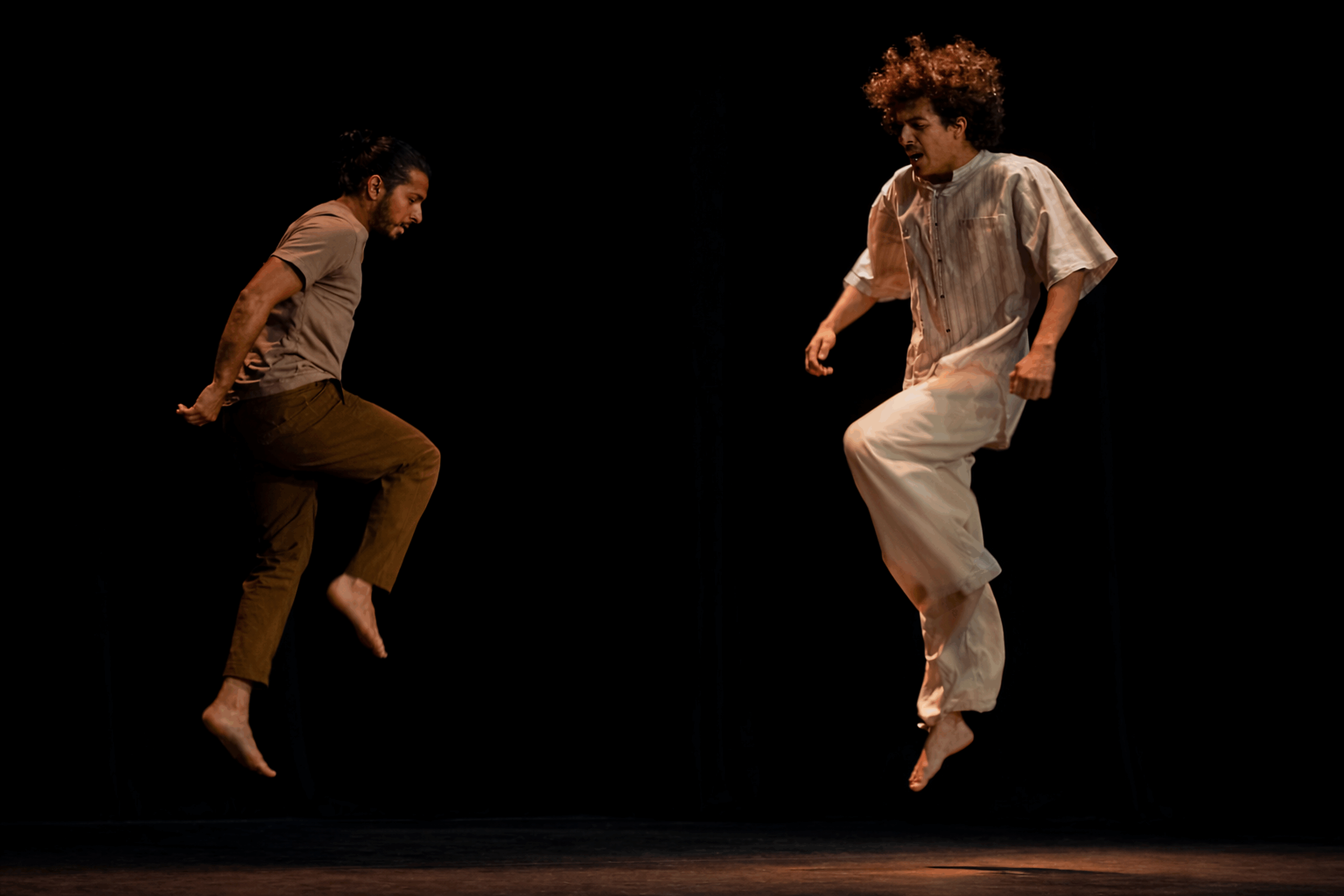 Dans cette pièce, les danseurs chorégraphes Ali Amaich et Khaled Bahanan incarnent une traversée intense, où le mouvement devient langage face à l’épreuve. Sur scène, leurs corps racontent la sécheresse — celle de la terre, mais aussi celle de l’être — et explorent les limites de l’endurance physique et émotionnelle. L’épuisement, loin d’être une fin, se transforme ici en un acte d’invocation.