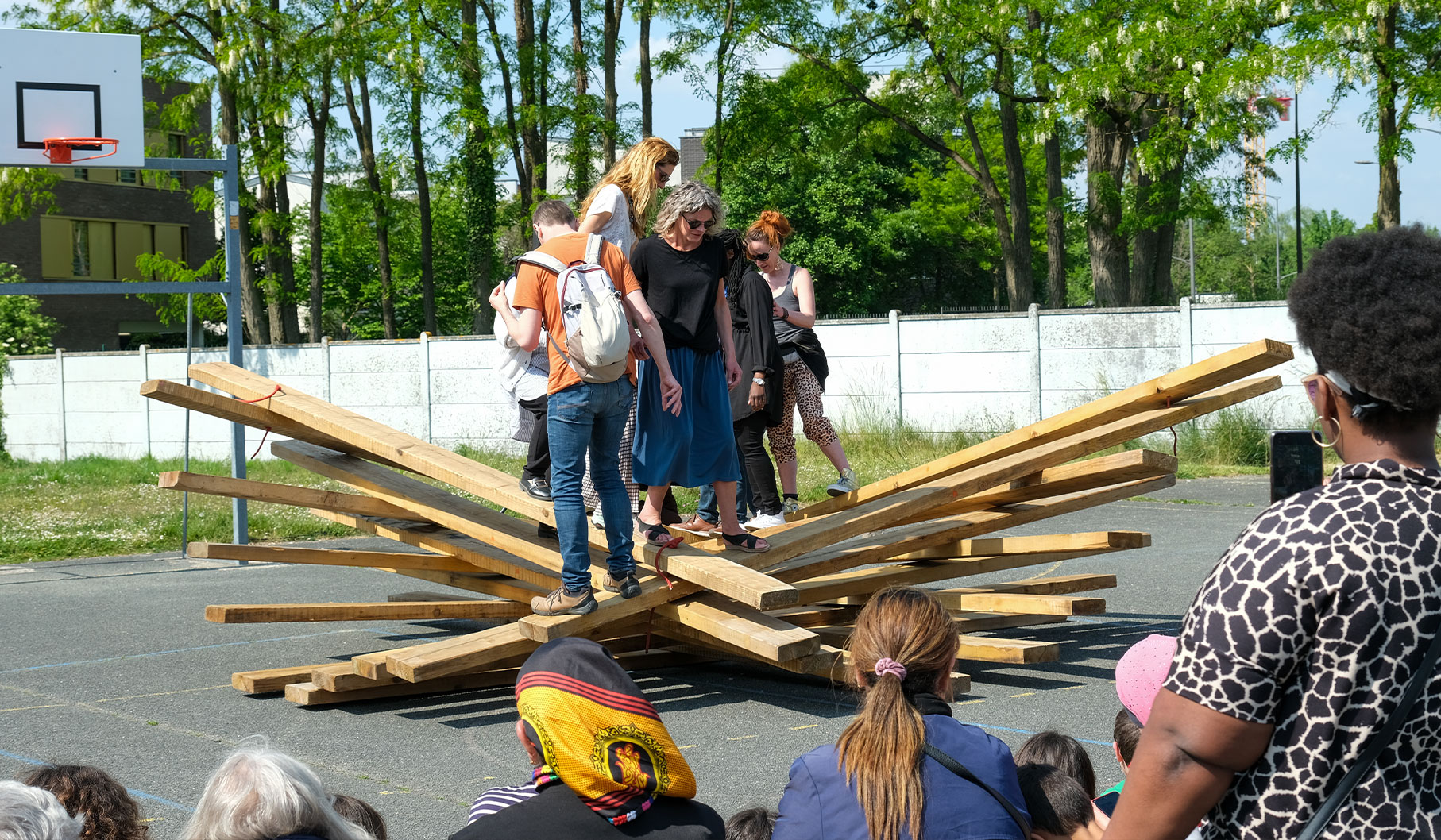 Cette création de Yann Ecauvre, est bien plus qu’un spectacle de cirque : une performance collective à couper le souffle. Chaque soir, vingt spectateurs sont invités à rejoindre la scène pour bâtir, ensemble, un équilibre géant sur des madriers de bois.