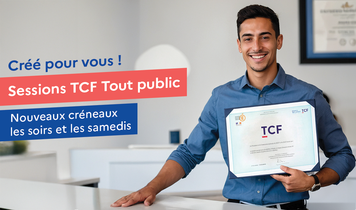 De nouvelles sessions TCF sur ordinateur sont désormais ouvertes certains soirs (de 18h à 21h) et tous les samedis (matin et après-midi).