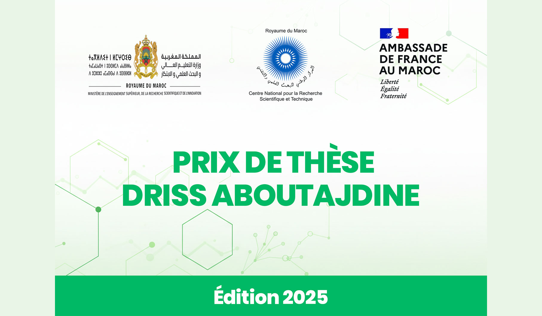 Le Centre National pour la Recherche Scientifique et Technique (CNRST) et l’Ambassade de France au Maroc lance l’édition 2025 du Prix de thèse Driss Aboutajdine.